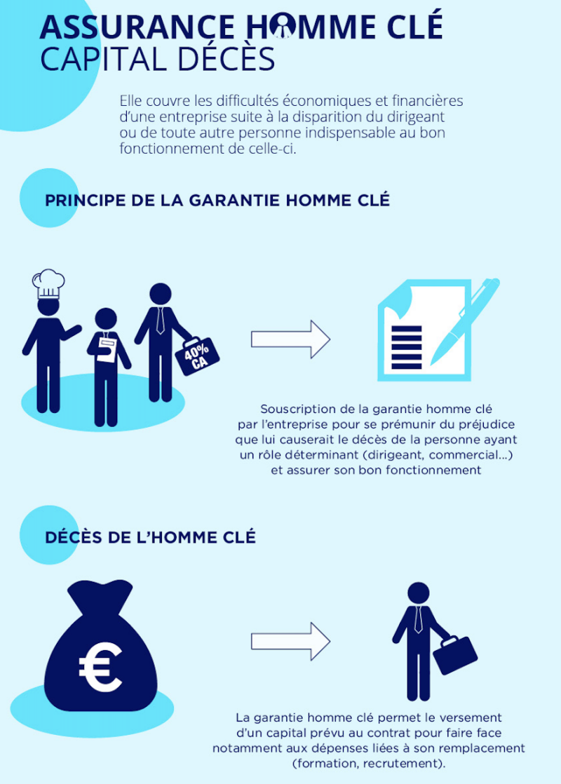 La garantie homme clé couvre les difficultés économiques et financières d’une entreprise face à la disparition d’une personne “indispensable” au bon fonctionnement de celle-ci : Dirigeant, ingénieur, salarié habilité, détenteur de brevet …